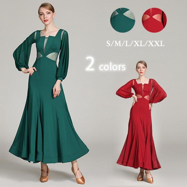 送料無料 社交ダンス衣装 モダンドレス ラテンドレス スタンダードドレス ワルツダンス 紗 マキシ丈